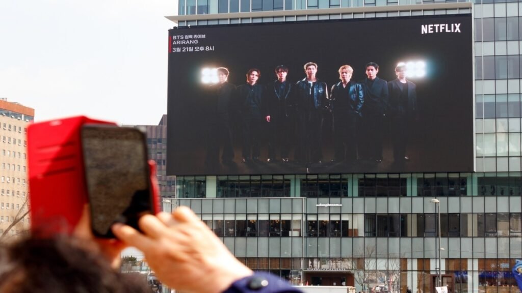 But the physical reality in South Korea left investors uneasy. Their BTS The Comeback Live: Arirang, a large-scale concert held at Gwanghwamun Square in Seoul, opposite the main entrance to Gyeongbokgung Palace, reported underwhelming numbers compared to the expected monumental turnout.
