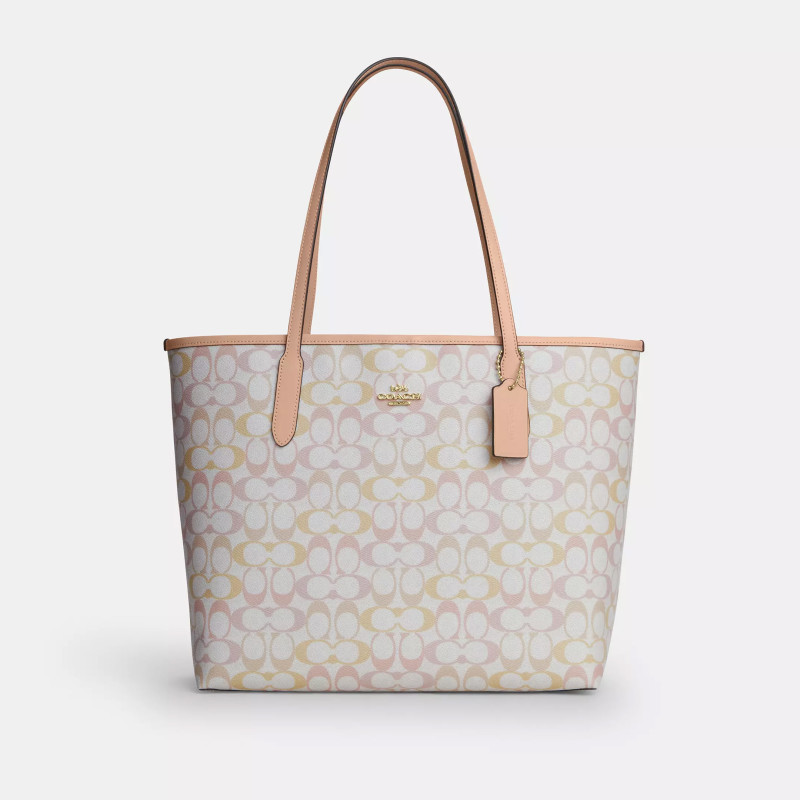 City Tote Bag In Ombré Pink Signature Canvas, $199 (was $295) at Coach Outlet