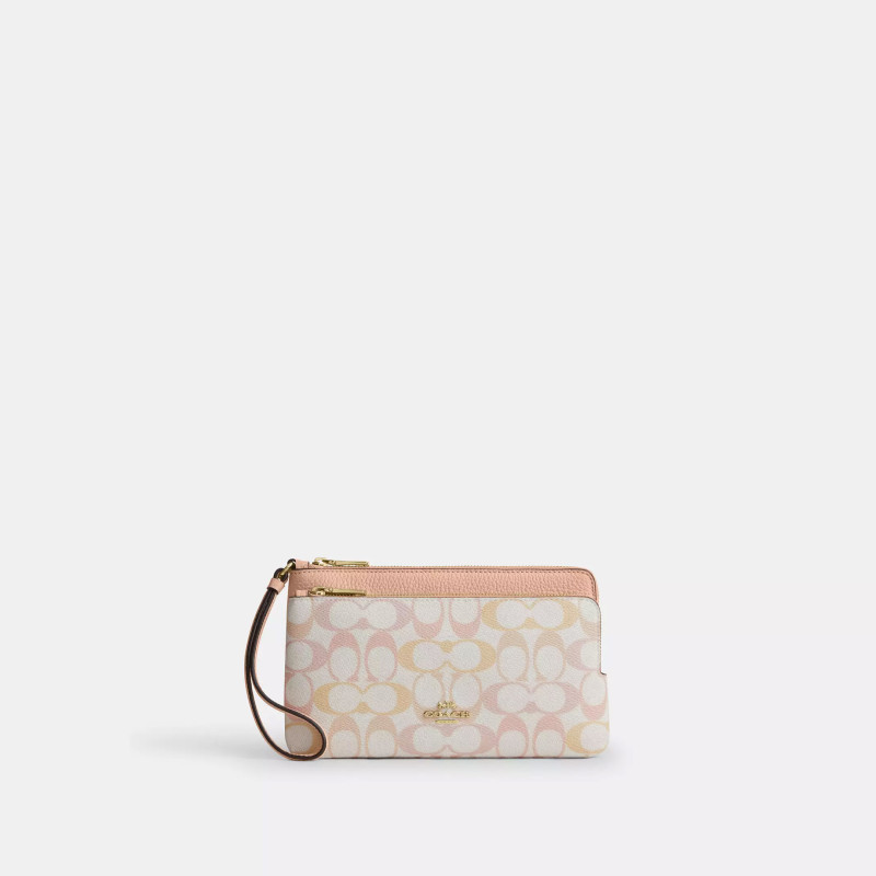 Double Zip Wristlet In Ombré Pink Signature Canvas, $79 (was $125) at Coach Outlet