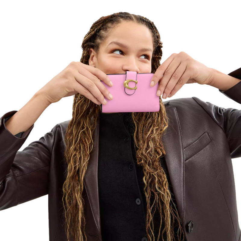 If you want more of Coach’s Flower Pink hue, you’re in luck. The color is available in a few other Tabby styles, including a smaller crossbody bag and a wallet.