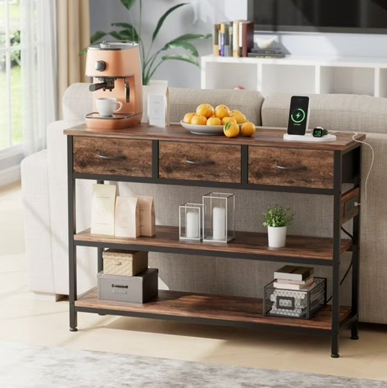 Walmart’s rustic $150 3-drawer console table with built-in outlets is on clearance for just $80